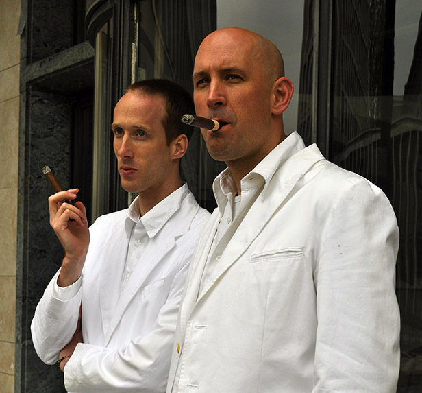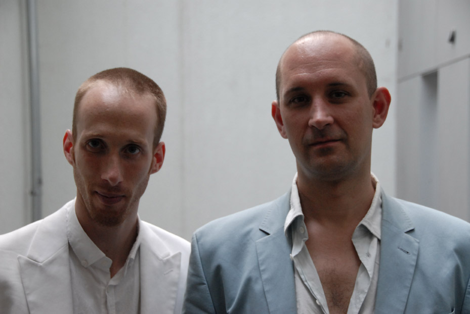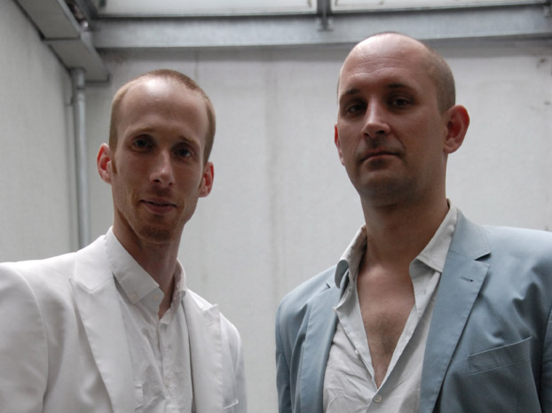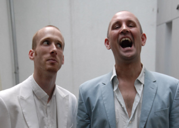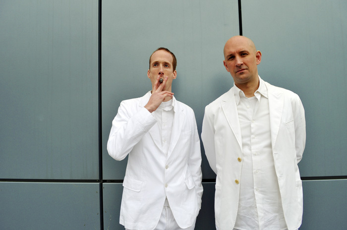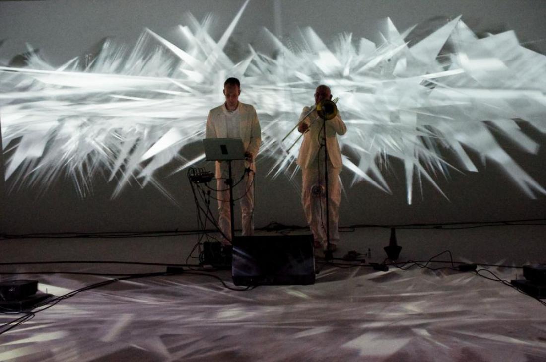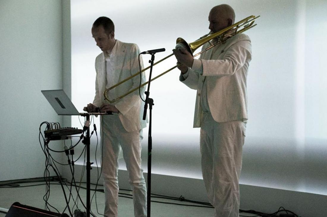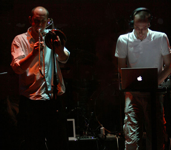 Aus der Abteilung programmatischer Maschinenfixierung ist "Männer mit Motoren" wohl eines der absurdesten Beispiele. Als würde das Wagnis alleine nicht reichen, als Posaunen-Laptop Duo aufzutreten, so verfolgen die Künstler, und nebenbei auch Gründer des Festivals für intermediale Improvisation "Frischzelle", konsequent Ihre Vision einer Fusion von akustischer Musik, elektronischer Musik und Computergrafik.