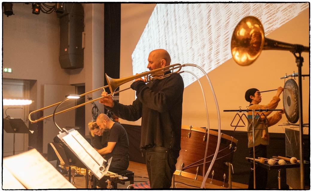 Till Künkler studied in Cologne, Frankfurt, and New York. He is a versatile musician, regularly performing with groups such as the Andromeda Mega Express Orchestra, Omniversal Earkestra, and Ensemble Modern. He has worked with Dave Taylor & NY Trombone Consort, Roscoe Mitchell, Toshinori Kondo, and Klangforum Wien, and has toured in the USA, Mali, Brazil, and across Europe. His artistic focus lies in bridging contemporary music, jazz, and free improvisation.