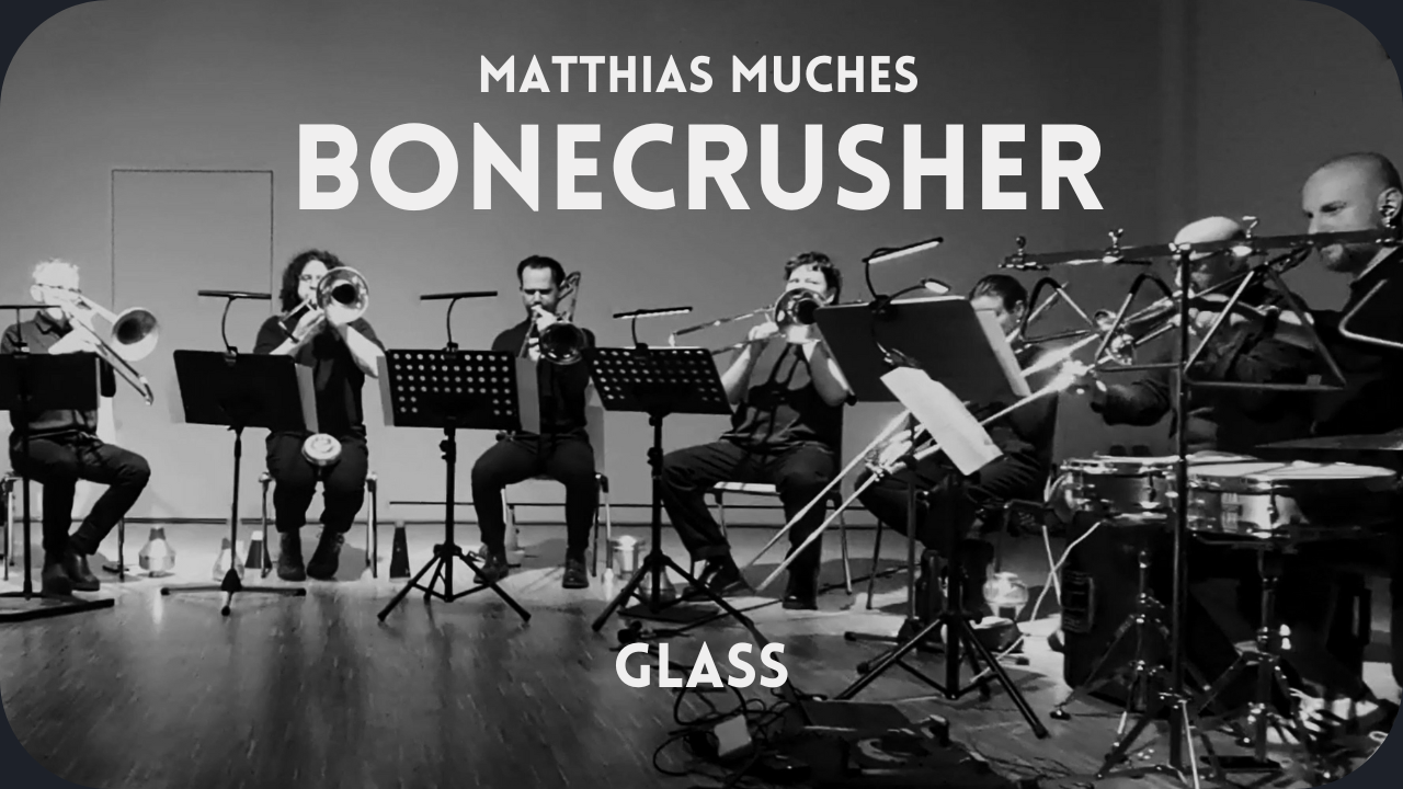 Matthias Muches BONECRUSHER - 10 trombones & percussion - plays music that ranges from sound-sculpture noise drones to walls-of-Jericho-collapsing blasts to delicate webs of air and tone, resonating overtones with layered articulations. Pushing the acoustic properties of the instrument and the physicality of the players to their limits and beyond, the musicians put their archaic contraption through the bone mill, pulverizing it, sublimating it, and breathing new life into it.