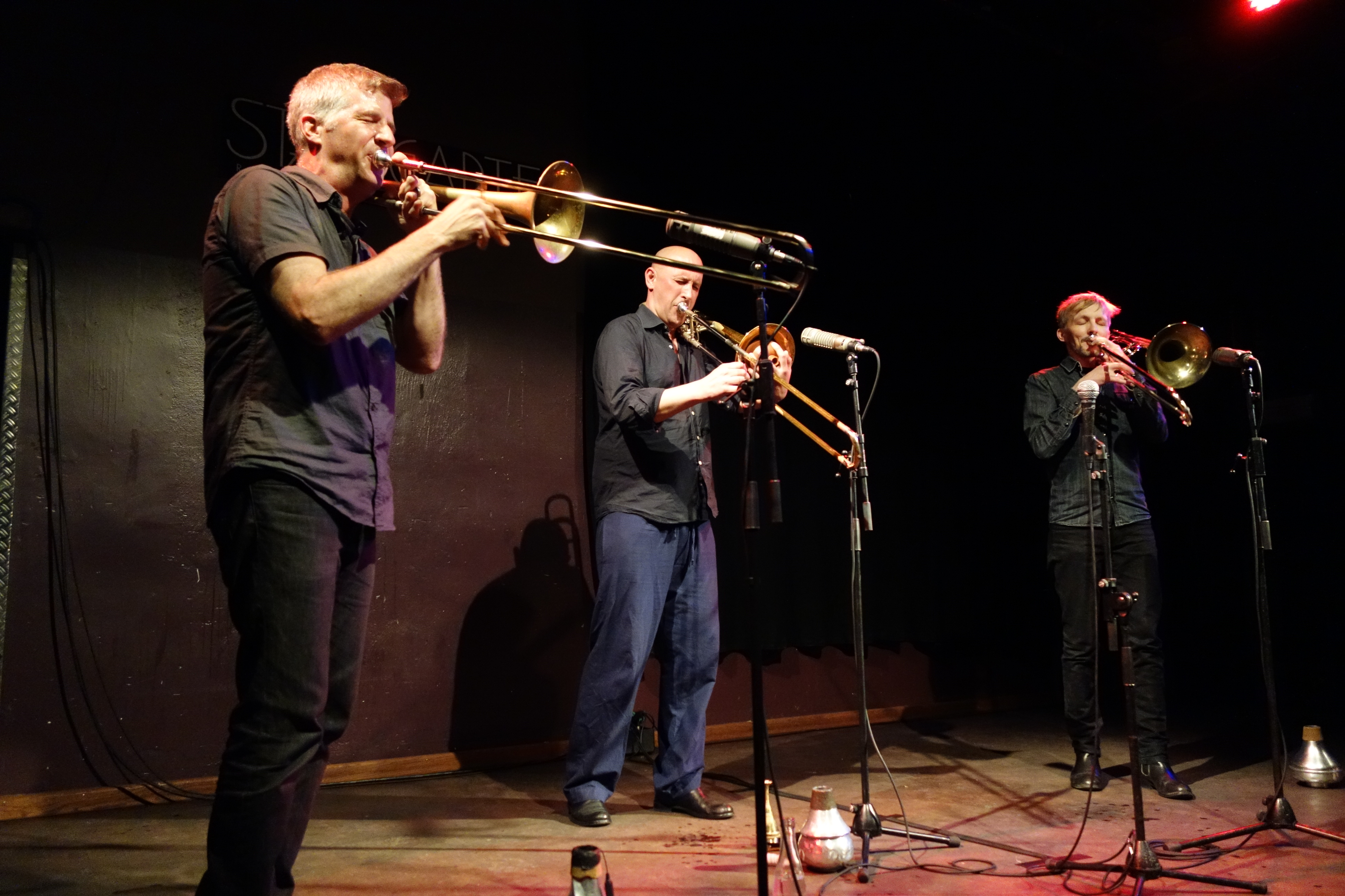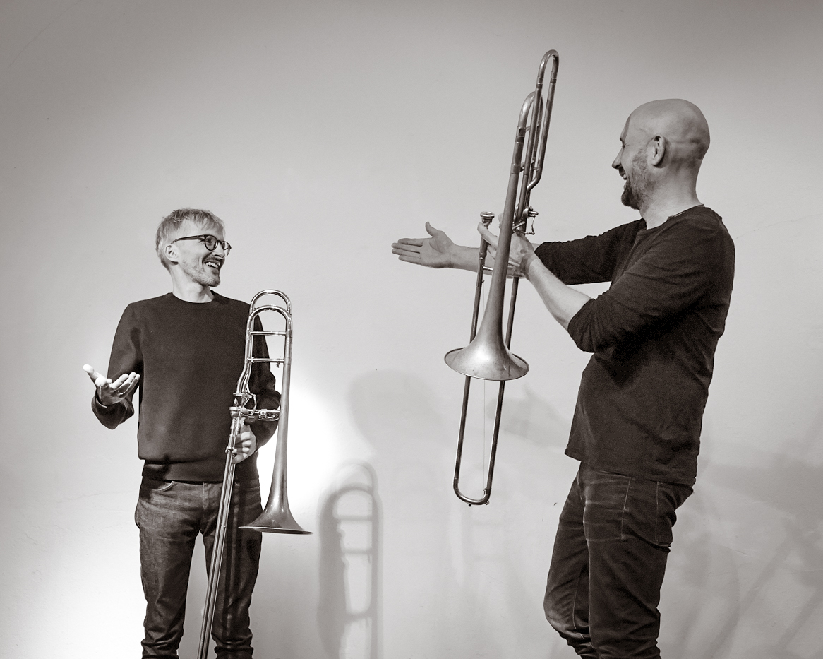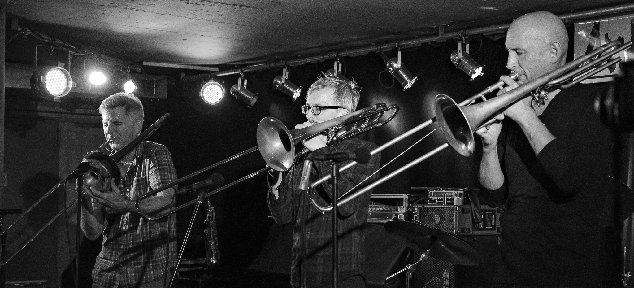 Since 2016, the three musicians have been exploring the sonic dimensions of the trombone beyond established structures. Their debut album, Konzert für Hannes, originally planned as a quartet with Johannes Bauer, was released in 2017 on the Polish label NotTwo. In 2022, the trio followed up with the album From A to B, released on the renowned label Jazzwerkstatt.