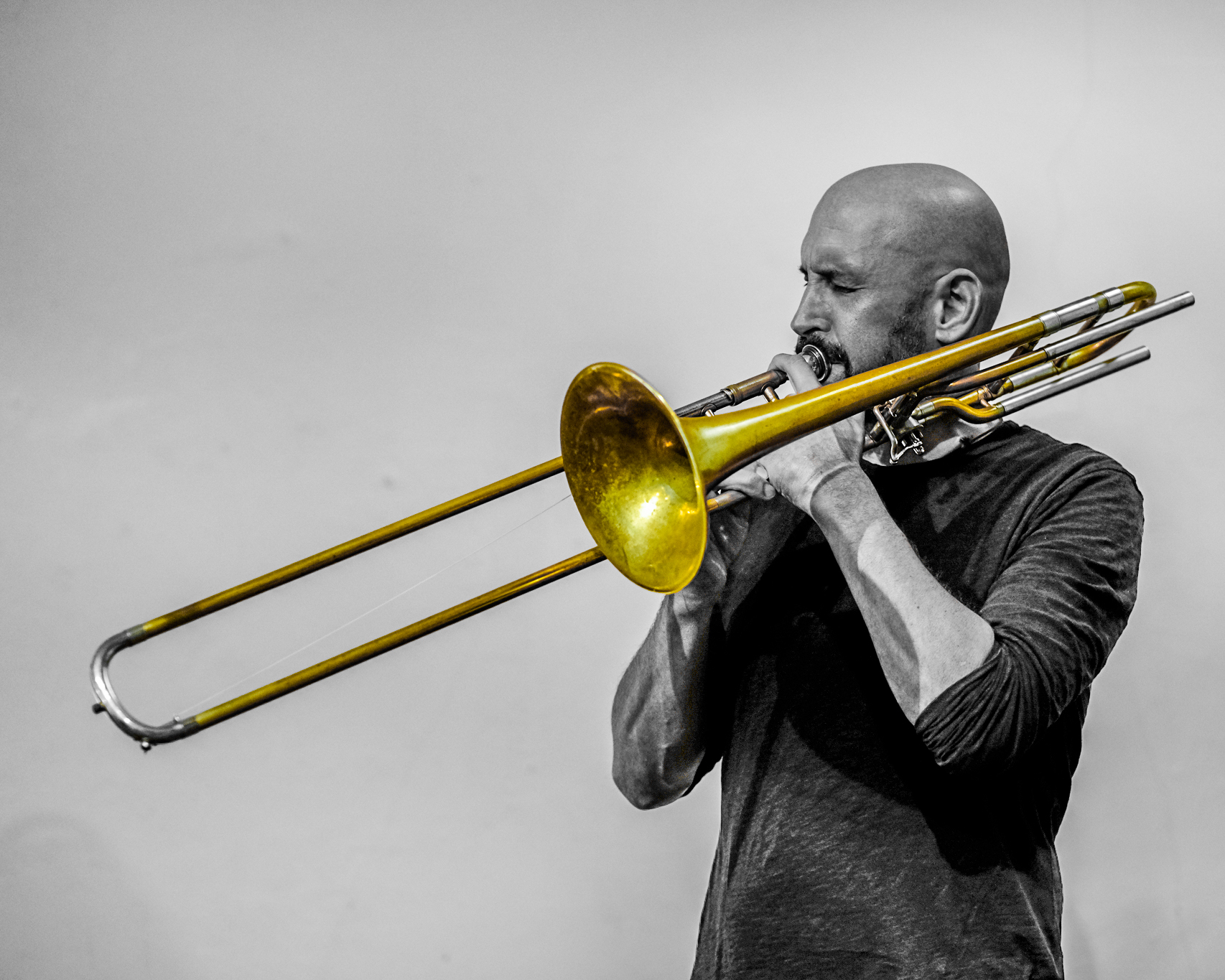 Jeb Bishop (Chicago) is one of the leading trombonists in improvised music and creative jazz. He has played in Peter Brötzmann’s Chicago Tentet, Ken Vandermark’s Territory Band, and the Globe Unity Orchestra, among others. The Chicago Sun-Times describes him as "one of the best-kept secrets in American jazz."