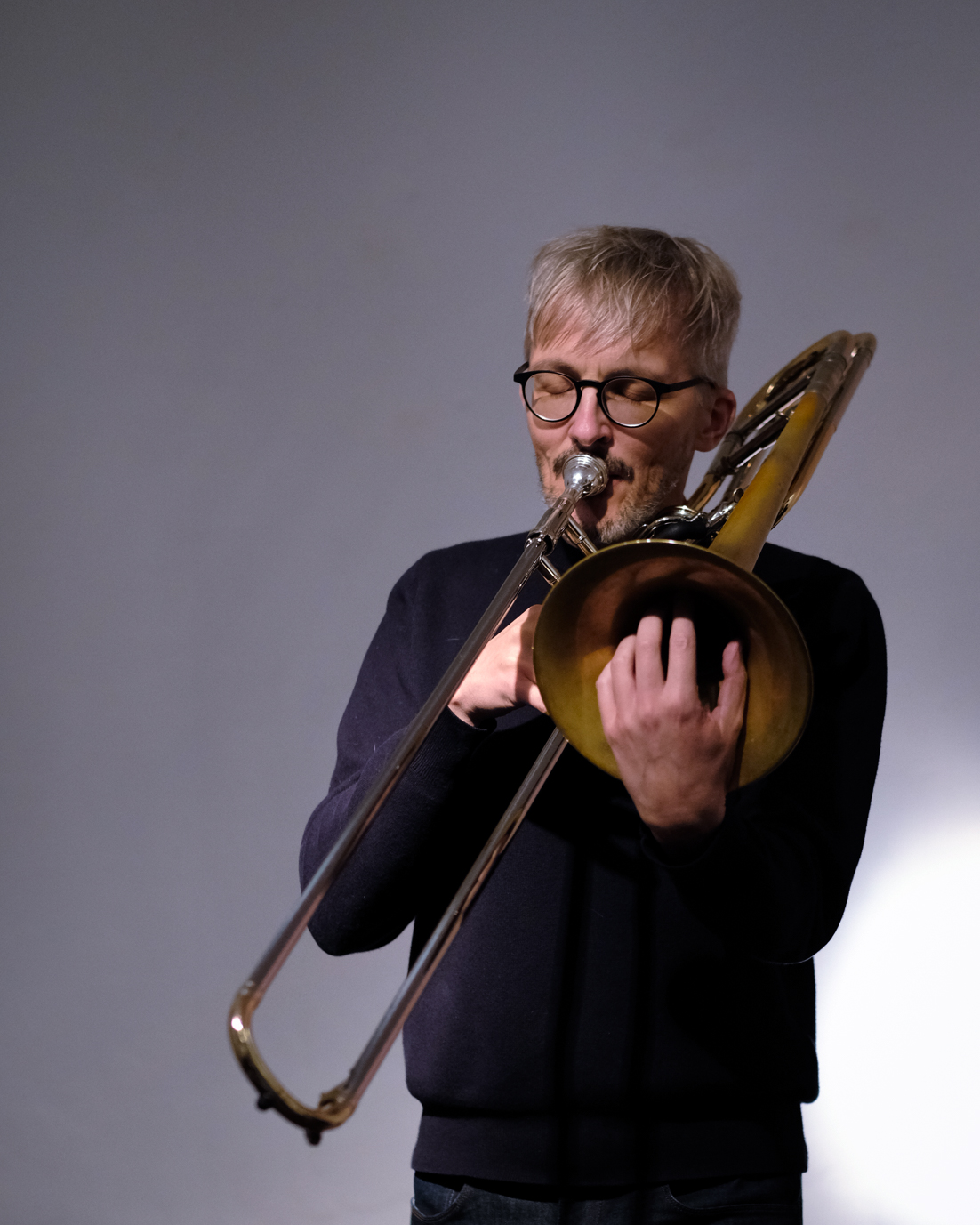 Matthias Muche (Cologne) received the 2021 WDR Jazz Prize in the Improvisation category. His large ensemble BONECRUSHER (10 trombones & percussion) was nominated for the Bestenliste of the German Record Critics' Prize in 2022. In his solo and trio projects, he combines the trombone with electronic sound experiments, interactive computer graphics, and unconventional playing techniques. He has performed in over 50 countries worldwide.