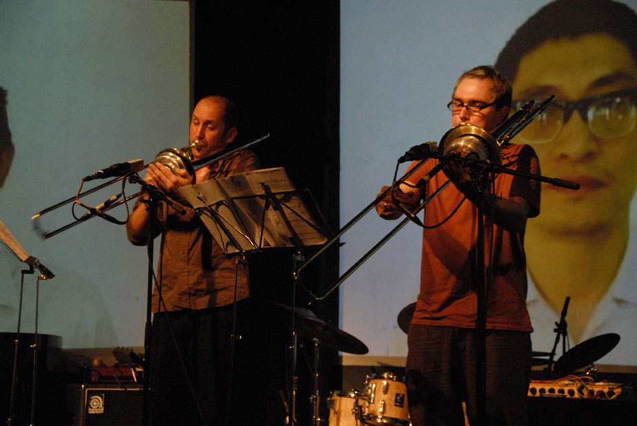 Die gemeinsamen Arbeiten folgten der Idee eines „Solos für zwei Posaunisten“, quasi einer von zwei Spielern bedienten Stereoposaune. Eine Angleichung der verwendeten Materialien und des Klangs war dafür die Grundlage. Es folgten Konzerte bei den Saalfeldener Short Cuts, im Porgy & Bess Wien, Austrian Soundcheck Graz und auf dem Frischzelle Festival im Stadtgarten Köln.