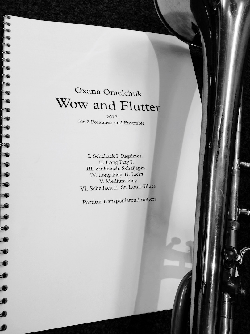 2017 konnte ein Kompositionsauftrag mit Mitteln des Musikfonds an Oxana Omelchuk realisiert werden. Es entstand das 25min Stück WOW AND FLUTTER im Rahmen des Projektes "Breaking News" mit Matthias Muche (Posaune) und dem Ensemble Studio Dan unter Leitung von Daniel Riegler aus Wien.